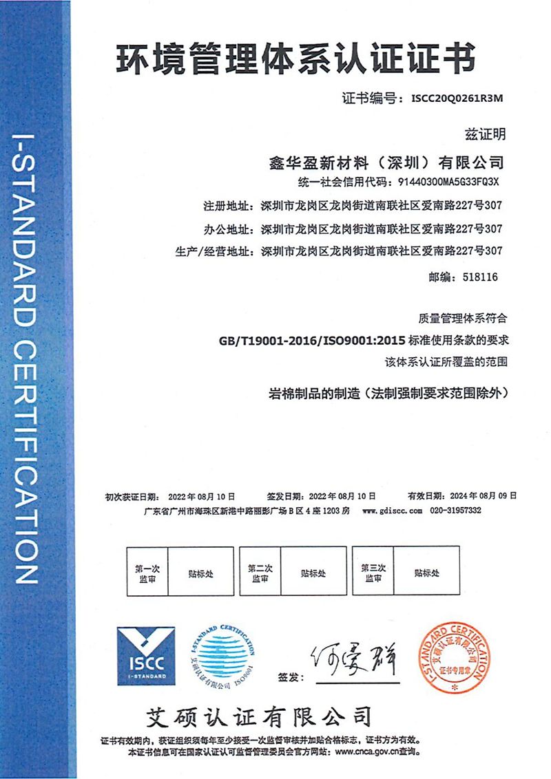 环境管理体系认证证书